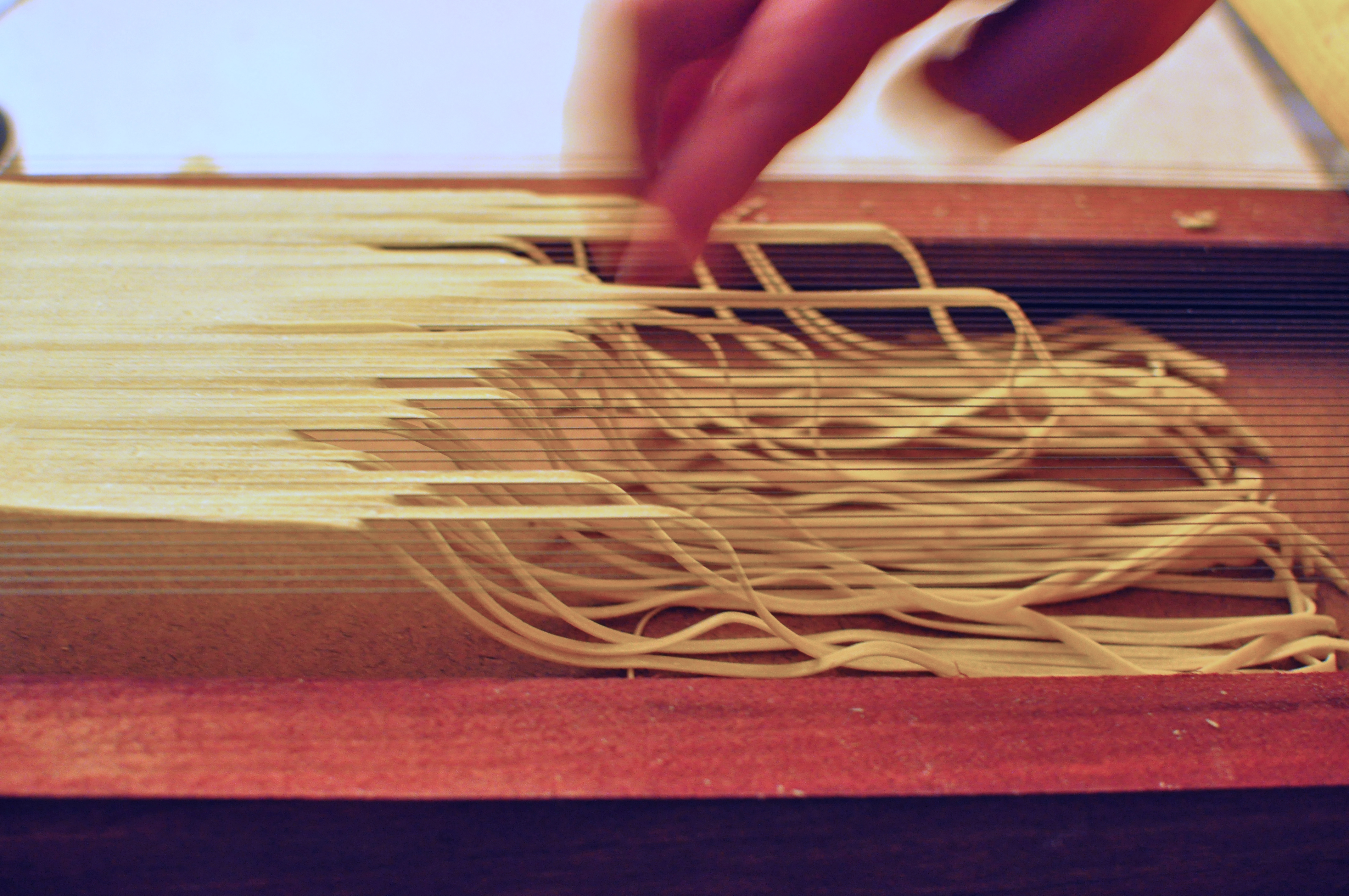 Cutting linguini on a chitarra